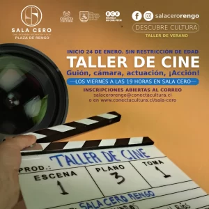 Taller de realización en cine: Aprende dirección, guión, fotografía o actuación mientras produces un cortometraje que se estrenará en Sala Cero Rengo y otros espacios. Una oportunidad única para experimentar el cine de forma práctica y creativa.